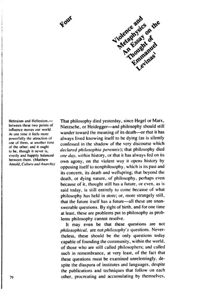 Levinas, while critiquing much of traditional Western philosophy, is deeply aligned with Descartes on certain crucial points, particularly the idea of perfection in Meditations on First Philosophy. Levinas, like Descartes, acknowledges the transcendent dimension of the self’s experience. However, Levinas reorients Descartes’ concept of perfection by situating it not in abstract metaphysical thought but in the ethical encounter with the Other. This connection becomes even clearer when examined alongside Derrida’s essay Violence and Metaphysics, which unpacks and critiques Levinas’ ideas while simultaneously highlighting their profound relevance. In Meditations, Descartes reflects on the idea of God as a being that is perfect and infinite, contrasting it with the imperfection and finitude of the self. For Descartes, the very fact that humans can conceive of perfection and infinity is evidence of a transcendent source outside themselves—God. Levinas builds on this notion of infinity, but he moves it from the realm of metaphysical speculation to phenomenology and ethics. For Levinas, infinity is not a concept grasped by thought; it is experienced in the ethical demand presented by the Other. When we encounter another person, their vulnerability and irreducible difference transcend our capacity to fully comprehend or master them. This is what Levinas refers to as the “infinite,” a notion that resonates with Descartes’ emphasis on perfection and infinity as that which exceeds the finite self. Levinas sees this ethical encounter as the foundation of reality itself. In his work Otherwise than Being, he argues that the self is constituted not as an isolated, autonomous subject but in its infinite responsibility to the Other. The Other, through their very presence, calls the self to an ethical relationship, disrupting the self’s tendency toward egocentrism and totalization. This ethical relationship is not optional or secondary; it is the primary structure of reality. In this sense, Levinas echoes Descartes’ focus on perfection and infinity but grounds it in the immediacy of lived experience and ethical obligation.
