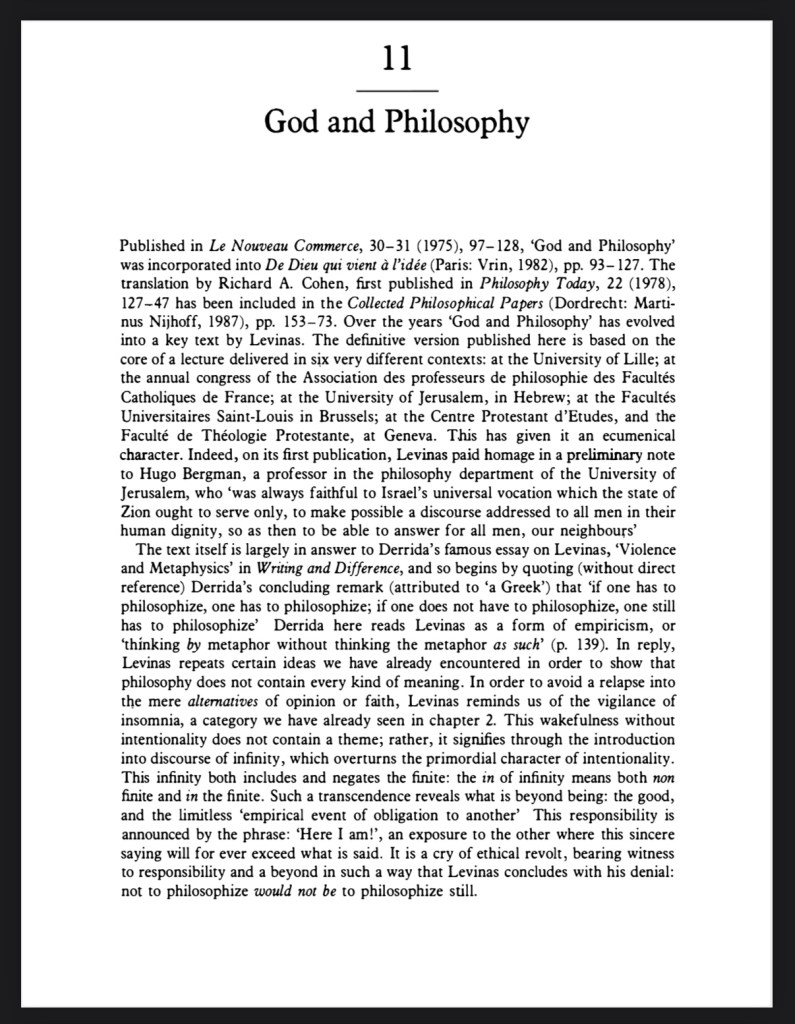 In Emmanuel Levinas’ essay God and Philosophy, he responds to many of the ideas Jacques Derrida critiques in Violence and Metaphysics. In this essay, Levinas emphasizes his departure from traditional metaphysical frameworks while addressing Derrida’s concerns about the tension between ethics, transcendence, and metaphysics. Levinas reaffirms that his project is not an abstract metaphysical exercise but a phenomenological and ethical inquiry into the human encounter with otherness, including God, understood not as a concept but as an ethical and relational reality. In Violence and Metaphysics, Derrida argues that Levinas, while critiquing the violence inherent in reducing the Other to the Same (as traditional metaphysics tends to do), cannot fully escape metaphysical language and structures. Specifically, Derrida notes that Levinas’ use of terms like “infinity” and “transcendence” risks falling into the same patterns of thought Levinas aims to critique. Levinas addresses this in God and Philosophy by reframing his discussion of transcendence and God. He insists that God, like the ethical relationship with the Other, cannot be reduced to a metaphysical concept or an object of intellectual grasp. Instead, God is encountered in the ethical dimension of human relationships, in the infinite responsibility for the Other. Levinas argues that traditional Western philosophy, including the metaphysical tradition Derrida critiques, has often sought to render God a being among beings—something knowable, categorizable, and reducible to human thought. This, for Levinas, is an extension of the same totalizing impulse that reduces the Other to the Same. In contrast, Levinas presents God as absolute otherness—what he calls “otherwise than being.” God, like the Other, cannot be grasped, reduced, or comprehended within the structures of knowledge. Instead, God is experienced as a call, as an ethical demand that breaks into human existence and compels the self to transcend its egocentrism. This reframing of transcendence aligns Levinas’ thought more closely with his phenomenological focus. God is not an abstract perfection, as Descartes might suggest in Meditations, but is instead encountered in the ethical reality of the Other. The infinite responsibility for the Other is, for Levinas, a trace of God—a rupture in the self’s being that calls it to something beyond itself. This is where Levinas and Derrida partially converge: both agree that reducing the Other or God to the Same (as a knowable entity) is a form of violence. However, Levinas insists that this transcendence is not merely linguistic or conceptual but is the very structure of human existence. This dynamic becomes even more relevant when applied to modern issues such as violence, radicalization, and technology. The refusal to encounter the Other in their irreducible difference—whether it manifests as online echo chambers, school shootings, or broader societal alienation—reflects what Levinas critiques as the “violence of totality.” These failures to respond ethically to the Other are not merely individual shortcomings but systemic issues, exacerbated by the isolating and dehumanizing tendencies of technology. For Levinas, this alienation is a rejection of God—not in a theological sense but in the ethical sense of refusing to acknowledge the infinite demand that the Other places on the self. Derrida’s critique in Violence and Metaphysics helps deepen this analysis. He points out that any attempt to articulate transcendence risks reintroducing metaphysical structures, which can obscure the radical nature of Levinas’ ethical project. Levinas, in God and Philosophy, responds by doubling down on the idea that transcendence is not a concept but a lived reality. God is not “something” to be known or defined but is encountered in the ethical disruption of the self by the Other. In this sense, the encounter with God mirrors the encounter with the Other—it breaks into the self’s world, shattering its illusions of autonomy and mastery. When tied to Descartes, Levinas’ argument takes on additional resonance. Descartes posits the idea of perfection and infinity as a clue to the existence of God, rooted in the rational capacity to conceive of something greater than oneself. Levinas transforms this idea, suggesting that infinity is not encountered in thought but in the lived, ethical relationship with others. For Levinas, the recognition of the Other’s irreducible dignity and vulnerability is the true encounter with the infinite. Derrida’s critique of metaphysical violence and Levinas’ response in God and Philosophy converge here: both emphasize the need to resist totalizing frameworks that deny the transcendence of the Other. Levinas’ response to Derrida in God and Philosophy highlights the ethical dimension of transcendence, reframing it as a phenomenological reality grounded in the encounter with otherness. This aligns with his broader critique of metaphysics and his insistence on the primacy of ethics over ontology. When tied to modern issues like technological alienation or violence, this framework offers a powerful critique: the failure to respond ethically to the Other, amplified by isolating technologies and dehumanizing ideologies, is not just a societal problem but a rejection of the very structure of reality. Levinas, with Derrida as his interlocutor, challenges us to rethink not only philosophy but the ethical foundations of human life itself.