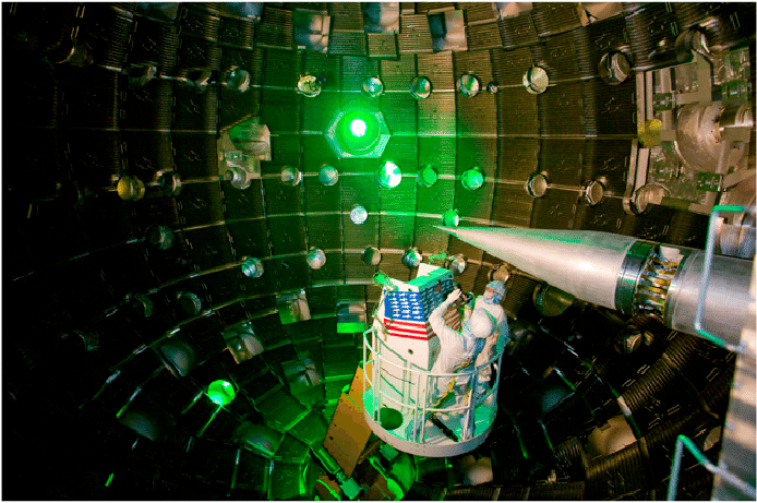 The National Ignition Facility in California is the world’s most energetic laser: 192 giant beams converge on a pinhead-sized fuel pellet, squeezing it to temperatures and densities found in stars so researchers can study fusion up close. Each shot also creates an ultra-hot, ultra-dense plasma—a seething, incandescent “ocean” of charged particles and light. By tracking how short laser probes or X-ray flashes slow and spread as they pass through this plasma, scientists can look for the tiny, topology-dependent drag that our electromagnetic-ocean model predicts should appear whenever waves traverse an intensely turbulent medium. Think of NIF as a brief, man-made star in a bottle: its fleeting micro-explosions give us a controllable way to see whether extreme plasmas tug on light in just the subtle way our theory anticipates.