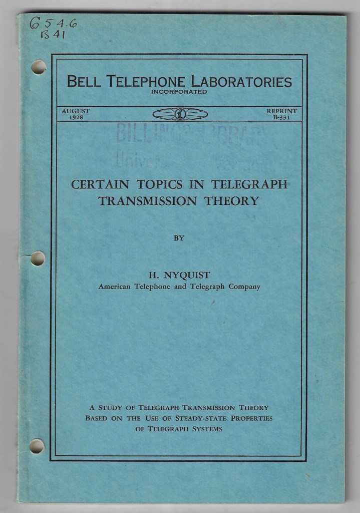 Nyquist refers to a cluster of ideas centered on the Swedish-American engineer Harry Nyquist, whose work in the early twentieth century formalized limits on signal transmission, stability, and sampling. In its most commonly invoked form—the Nyquist–Shannon sampling theorem—it states that a continuous signal can be perfectly reconstructed from discrete samples if it is sampled at a rate at least twice its highest frequency component. This minimum rate, 2fₘₐₓ, is called the Nyquist rate. If sampling falls below this threshold, higher frequencies “fold” into lower ones, producing aliasing: a structural misreading of the signal, not just noise but a false identity imposed by insufficient temporal resolution. Etymologically, the name “Nyquist” is simply patronymic, but its technical afterlife has come to signify a boundary condition: the point at which continuity can still be faithfully inferred from discreteness. Historiographically, Nyquist’s 1928 paper on telegraph transmission (“Certain Topics in Telegraph Transmission Theory”) predates Claude Shannon’s 1948 formalization, yet already contains the germ of the sampling limit in the context of bandwidth and symbol rate. Shannon later universalized the insight, embedding it in information theory and linking it to entropy, channel capacity, and probabilistic signal spaces. Historicity here matters: Nyquist’s work emerges from concrete engineering constraints—telegraph wires, bandwidth limits—before being abstracted into a general law of representation. At a more foundational level, Nyquist marks a threshold between fidelity and distortion, between a world that can be reconstructed and one that has already been irreversibly misregistered. It is not merely a rule about signals; it is a statement about the conditions under which any discrete system can claim to preserve the structure of what it samples. Below the threshold, the system does not simply lose detail—it produces coherent but false patterns, a kind of lawful hallucination. In this sense, Nyquist names a limit where representation ceases to be accountable to its source, even while appearing internally consistent. “Certain Topics in Telegraph Transmission Theory” is Harry Nyquist’s 1928 Bell System Technical Journal paper, written at a moment when long-distance telegraphy was running into very concrete physical limits—bandwidth, noise, and the crowding of symbols along a wire. What Nyquist does in that paper is not yet the full probabilistic theory later associated with Shannon, but something more austere and structural: he asks, given a channel of finite bandwidth, how fast can distinct symbols be sent without them blurring into one another? His central result is what later came to be called the Nyquist rate in a different but related sense: if a channel has bandwidth B (in hertz), then at most 2B independent signal changes per second can be transmitted without intersymbol interference, assuming ideal conditions. The concern here is not sampling an existing signal, but packing discrete pulses into time in such a way that each remains distinguishable at the receiver. The key insight is that bandwidth imposes a strict limit on how sharply a signal can change in time; if symbols are sent too quickly, their waveforms overlap and corrupt one another. The channel itself, by filtering frequencies, stretches each pulse, so the past leaks into the present. Nyquist formalizes this through the idea of constructing pulse shapes that are zero at all sampling instants except their own—a condition later expressed through sinc functions. This is already a kind of proto-sampling logic: the signal is designed so that, when observed at the right instants, each symbol appears cleanly, even though between those instants the waveform may be complex and overlapping. The paper thus quietly contains the seed of the later sampling theorem: the recognition that time and frequency are locked in a reciprocal constraint, and that discrete recoverability depends on respecting that constraint. Historiographically, this work sits at the hinge between analog engineering practice and abstract information theory. Nyquist is still speaking the language of telegraph pulses, line distortion, and practical signaling rates, but he is already articulating limits that do not depend on any specific technology. Shannon, twenty years later, will generalize this into a full theory of communication under noise, introducing entropy and coding. Yet Shannon’s famous results presuppose Nyquist’s earlier recognition: that there is a structural ceiling imposed by bandwidth itself, even before randomness enters the picture. What gives the paper its lasting force is that it identifies a boundary condition of representation. A channel does not merely carry signals; it shapes the very possibility of distinction within them. Beyond a certain density, differences collapse—not into silence, but into ambiguity. Signals still arrive, but their identities are no longer separable. In that sense, Nyquist’s result is less about speed than about the preservation of form under constraint: how quickly one can speak before speech ceases to remain articulate. Nyquist’s work ties to cryptography at the level of transmission, recoverability, and the management of distinction under constraint. Cryptography is usually described as the art of hiding meaning, but before meaning can be hidden, it must first be rendered into a signal that can survive a channel. A ciphertext is not floating abstraction. It becomes pulses, voltages, optical flashes, radio emissions, magnetic states, packet timings. The moment encryption leaves pure mathematics and enters material transmission, it falls under Nyquist-type limits. The encrypted message must still be sampled, clocked, synchronized, and reconstructed. If the signal is undersampled, distorted, or crowded past the channel’s capacity, the issue is no longer secrecy 